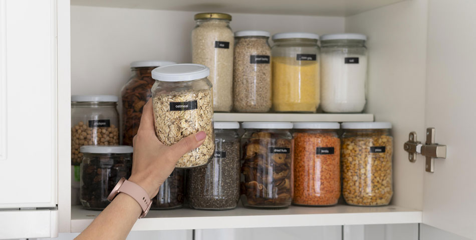 Предимства: Предпазват храните от влага и вредители, запазвайки ги свежи за по-дълго време. Прозрачните материали подобряват подредбата, като позволяват бърз преглед на наличното.